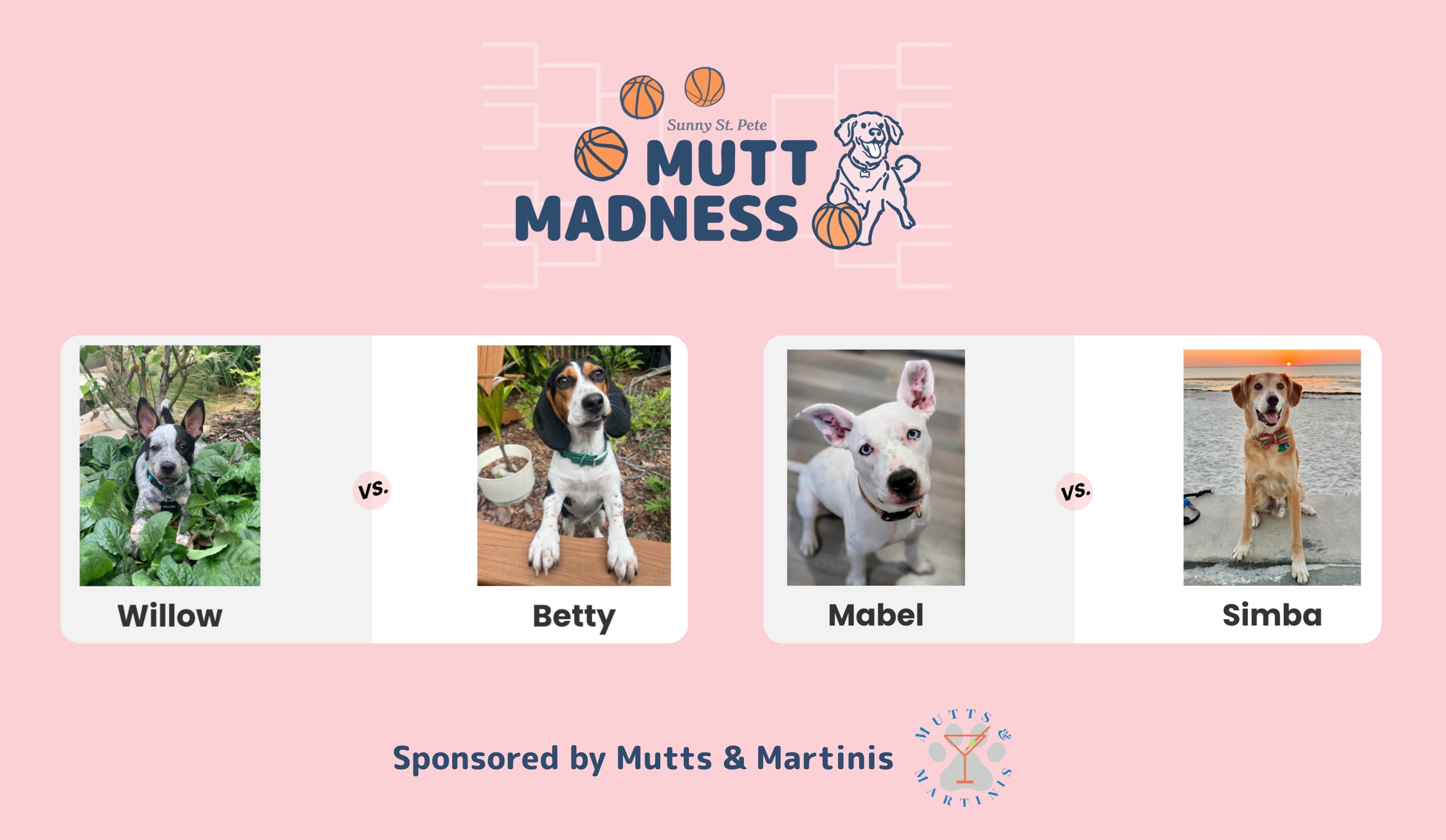 Congratulations to the Final Four pups for Mutt Madness (benefitting Pet Pal Animal Shelter)! When voting, click on each picture to read a little about each doggo.