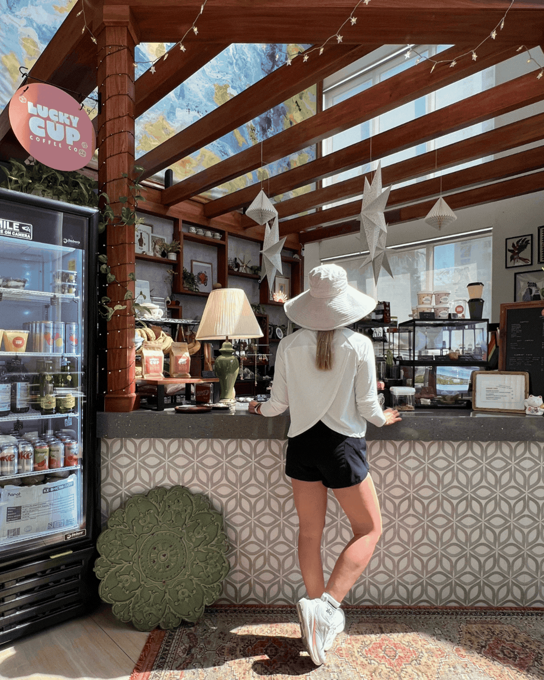 About the shop: Lucky Cup Coffee Co. is a cutie bohemian hidden gem tucked inside the lobby of The Galaxy Hotel in Downtown St. Pete. House-made syrups, creative menu, women-owned. I love their origin story and the quiet + trendy sitting area in the hotel’s lobby. You can also take the elevator up to the patio to enjoy your drink along with great views of the city.